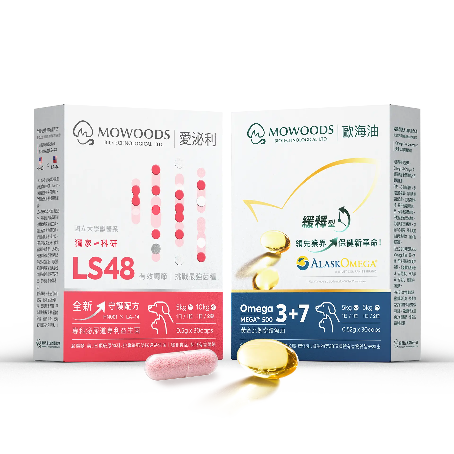 由國立大學獸醫系共同研發,選用專科泌尿道益生菌 LS48, 搭配美國專利益生菌 HN001、LA14,形成多層次菌相守護。
